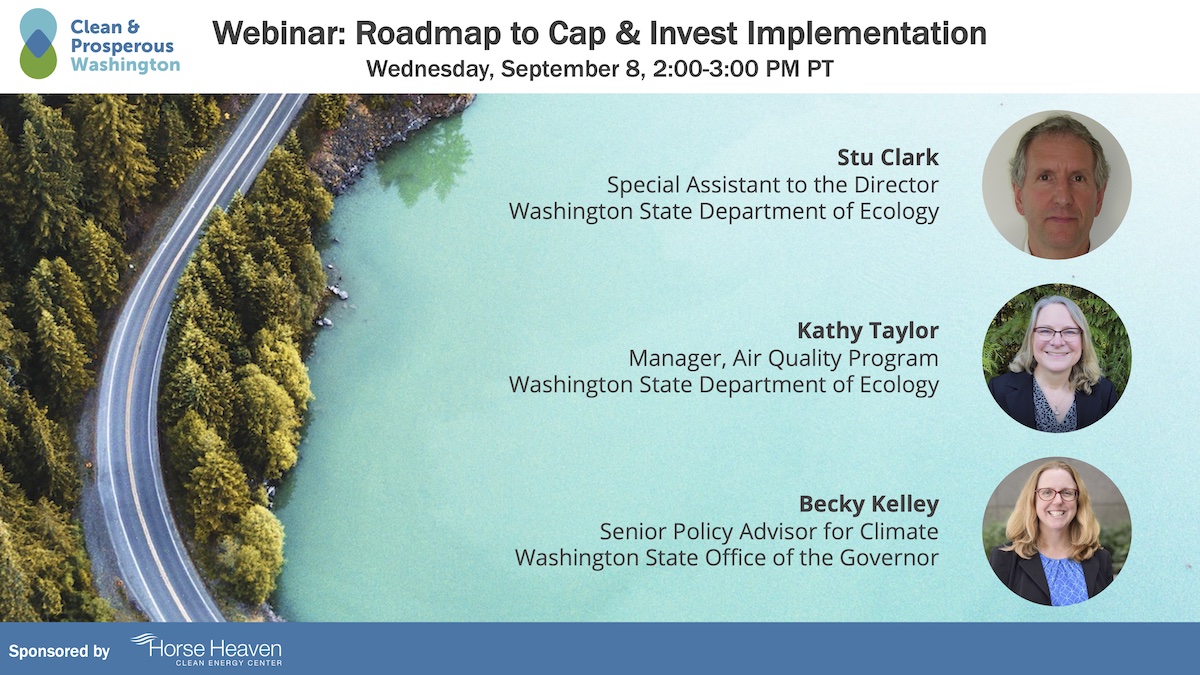 Now that the Climate Commitment Act has passed, how will the state of Washington implement this historic climate change policy? Please join Clean & Prosperous Washington for a discussion with the Department of Ecology and Office of Governor Jay Inslee on the plan and process for creating the rules that will govern the state’s new cap on climate pollution. Attendees will hear directly from regulators about the calendar of events, important public comment opportunities, and integrating the cap with other clean energy policies.