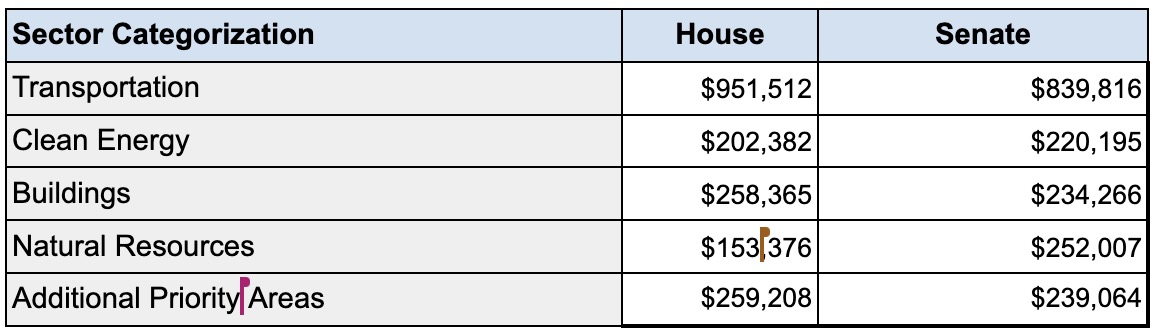 Revenues from Climate Commitment Act (CCA) emissions allowance auctions will be allocated in ways that will support Washington state in achieving its greenhouse gas emissions reduction requirements, improve public health, spur creation of union jobs, boost private investments, and reduce compliance costs. Both the Senate and the House propose biennial budgets of about $1.8 billion. What are the differences? What are the highlights?