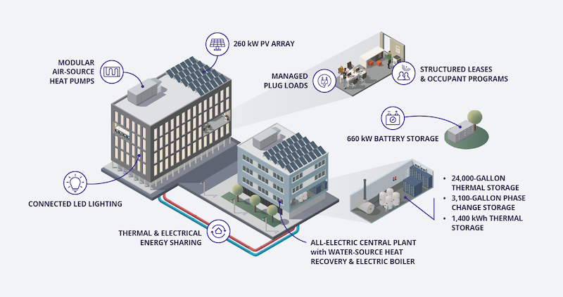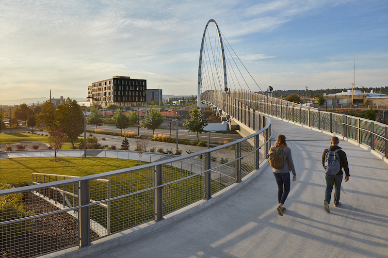 Delegates on this year’s Clean & Prosperous Institute Made in Washington Study Mission got to see first-hand Edo’s South Landing Eco District in Spokane, the first large-scale demonstration of how buildings can be transformed into efficient, reliable grid assets. According to Edo, the South Landing Eco District is an all-electric, grid-interactive campus that communicates with the utility grid, creating a seamless flow of energy. During the visit, Edo management shared their vision of a built environment that harmonizes more effectively with the utility through real-time power monitoring and load management, distributed power storage, and thermal exchange technology. By deploying an “active partnership” strategy, buildings operate more efficiently and reduce electricity demand peaks. Best practices learned in this “lab” can be shared and scaled.