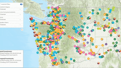 We also see the Institute’s interactive Risk of Repeal map and database, which visualized for media, decision-makers, and community leaders the state-spanning Climate Commitment Act  investments working to improve life in Washington: