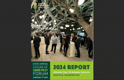 Looking back, we see Governor Jay Inslee headlining the Clean & Prosperous Institute’s Future of Carbon Policy Forum at the Amazon HQ and Spheres:
