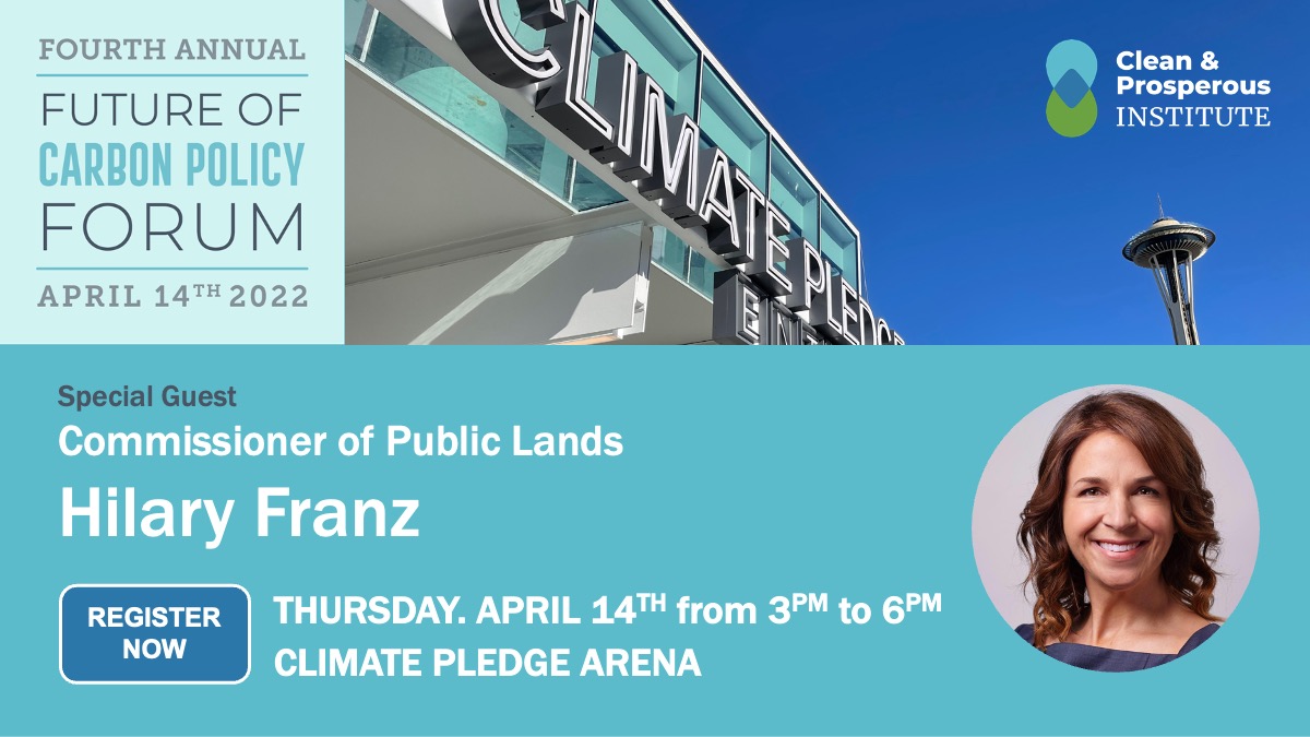 Next Thursday’s 4th Annual Future of Carbon Policy Forum at Climate Pledge Arena features a roster of dynamic speakers and special guests. And now we’re pleased to announce that Hilary Franz, Commissioner of Public Lands, will be there too! Commissioner Franz will highlight the just-announced, first-in-the-nation forest carbon project, protecting ecologically valuable forests and creating over a million carbon credits.