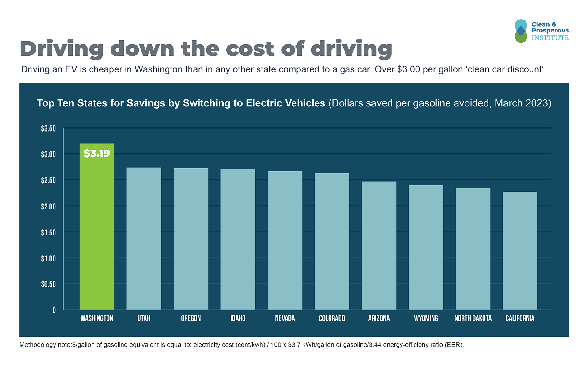 Switching to an EV will save over $3.00 per gasoline gallon equivalent, according to a Clean & Prosperous Institute analysis.
