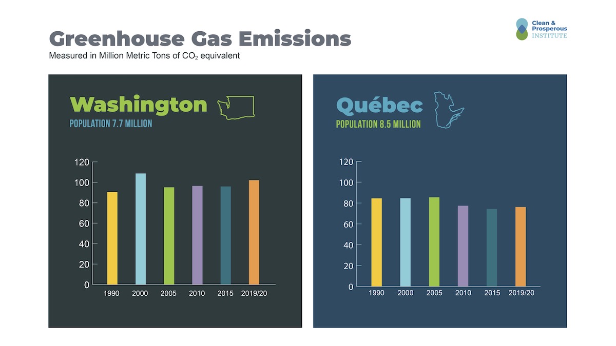 And just as Washington state is a clean economy leader in the U.S., Québec sets the pace in Canada. Québec introduced its Cap-and-Invest system ten years ago. Washington’s Cap-and-Invest system commenced this year and is designed to potentially link with the programs in Québec and California, meaning that businesses in one jurisdiction can use emission allowances issued by the others for compliance. This increases the number of businesses under the cap, which reduces compliance costs by creating more options for companies to reduce their emissions.