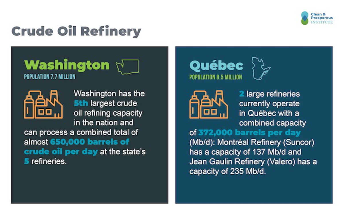 Like Washington, Québec is home to some large oil refineries: