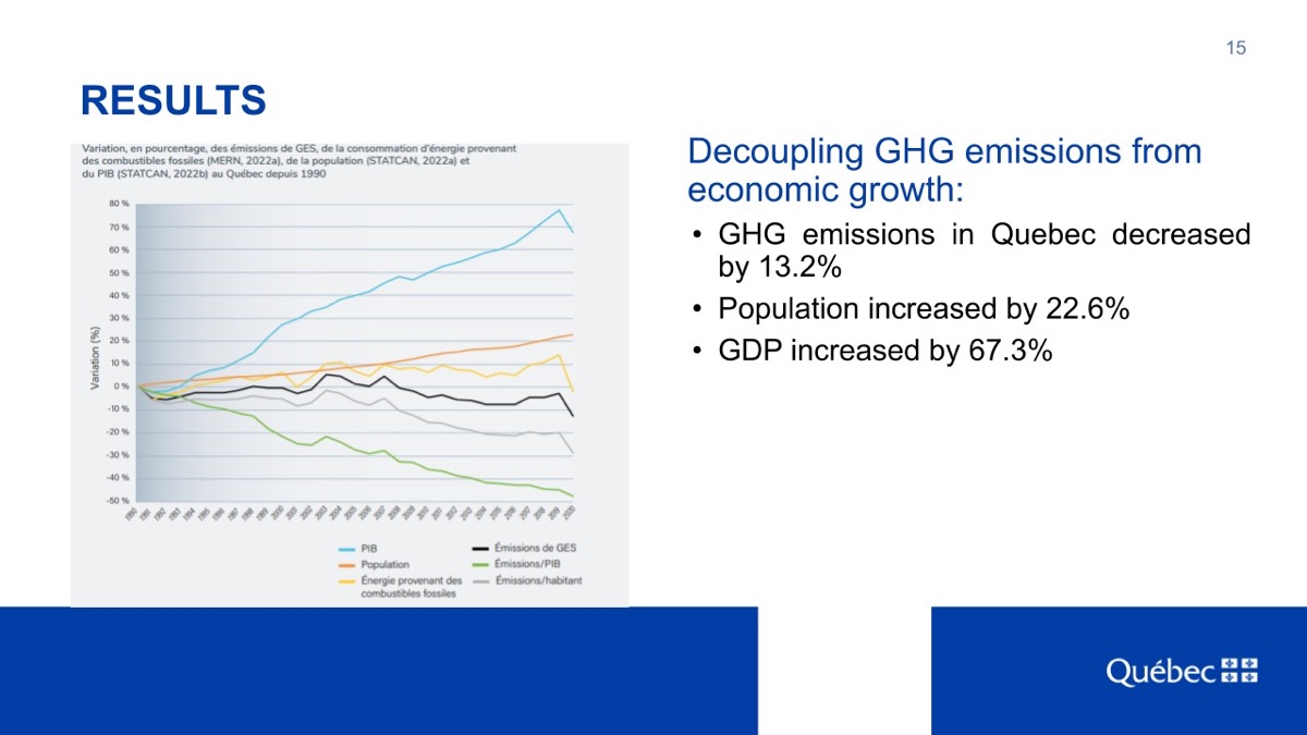 “Linking to Québec’s Carbon Market” was the title of Onil Bergeron’s talk. Onil is Senior Strategic Advisor, Emissions Data and Carbon Regulation, and he shared the results of Québec’s Cap-and-Invest program at the 10-year mark: