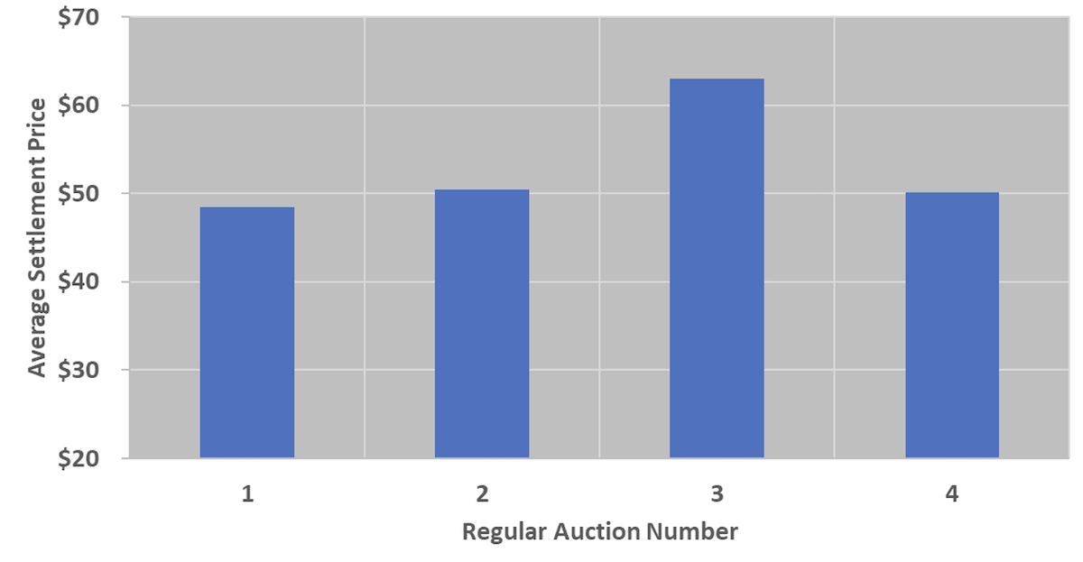 Regulated parties purchased nearly $500 million allowances in order to comply with our state’s carbon emissions limit. Closing prices averaged $50.13, dropping over 20% from the 3rd quarter auction settlement price.