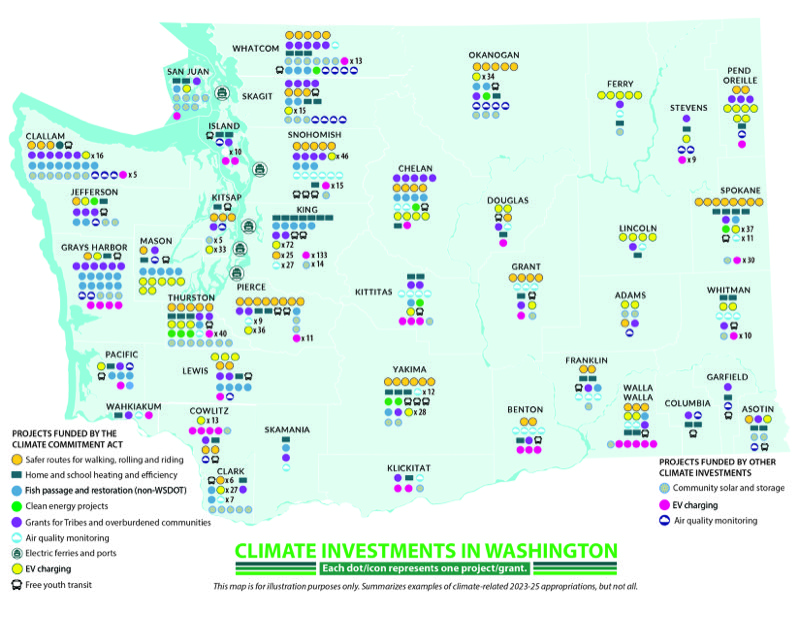 Revenues raised from Washington’s cap-and-invest Climate Commitment Act (CCA) are invested in projects and programs that benefit communities across the state. These are investments that will pay dividends to you in the form of lower costs for cleaner energy, and more jobs in a greener economy.