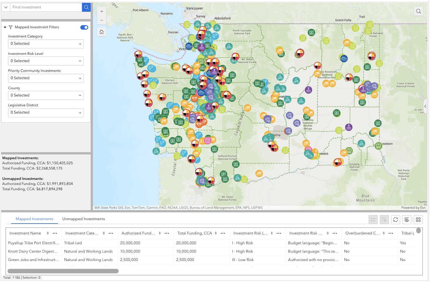 Projects at risk of repeal range from forest health initiatives and salmon recovery projects to transportation improvements and new ferry construction. The interactive map and downloadable database plots over $1.1 billion in community investments, representing 60 percent of revenues generated to date from CCA auctions. Another $2 billion of authorized programs are still in the process of being distributed to Washington residents and businesses. The Risk of Repeal Mapping Tool will continue to track these as funding flows to communities.