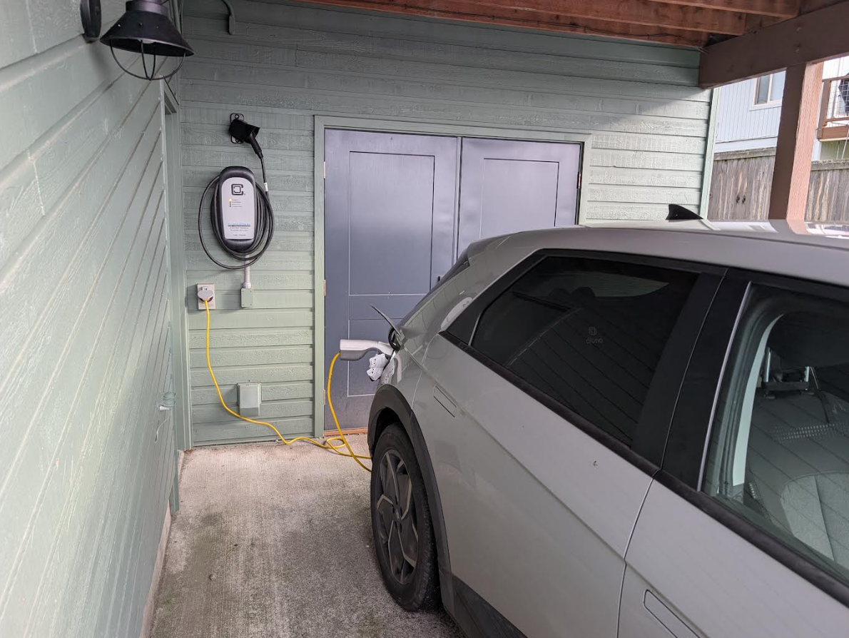 The ability to provide backup power in an emergency was one of the key reasons Kevin and his family decided on their family-sized (for a 6’2 dad’s legroom) EV right around the time his family grew from three to four. He went with the Hyundai Ioniq 5, which was the first “vehicle-to-load” car to come to market in Washington, meaning the driver could draw power from the car’s battery for energy supply via the charge port.