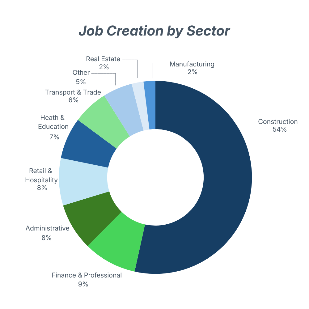 - 151,600 induced jobs driven by increased spending on local services like food, healthcare, and retail.